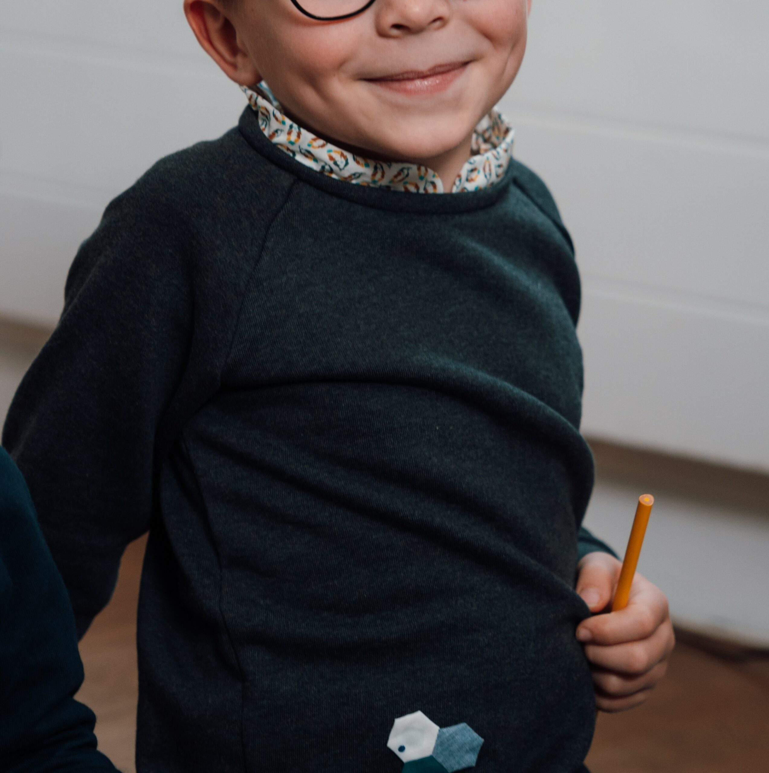 Le corps du sweat est cousu dans un jersey issu de stocks dormant de grandes maisons de luxe – un choix responsable et engagé. Le col est confectionné dans de jolis tissus soigneusement choisis : parfois chinés, parfois offerts, parfois achetés suite à un coup de cœur… Chaque pièce à son histoire.